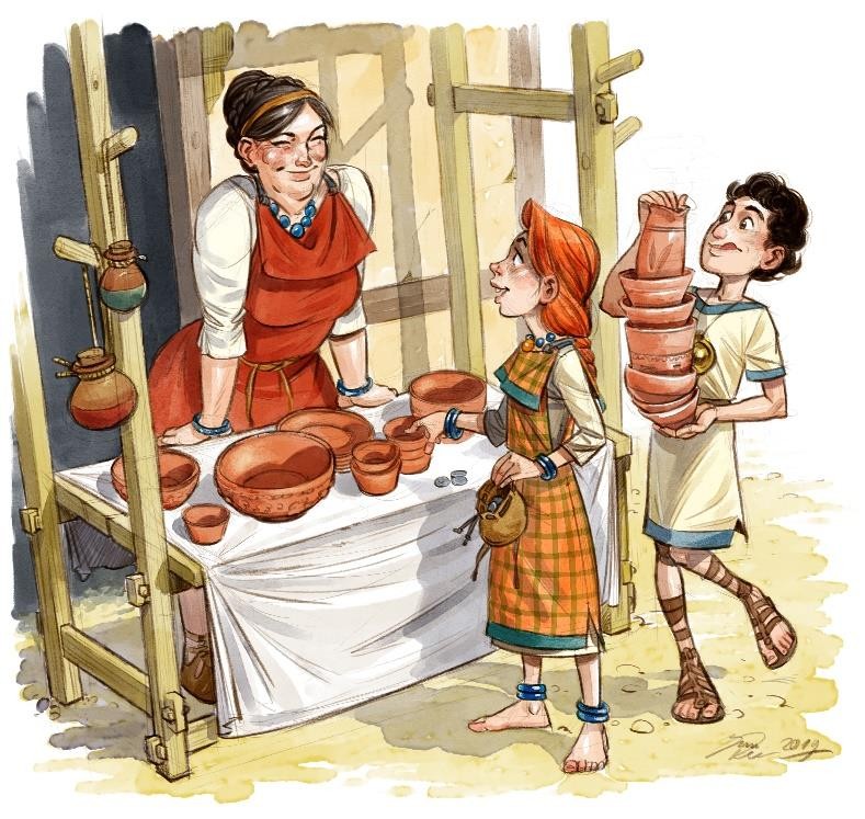 Die Vorratshaltung besorgt Marcus‘ Mutter Iulia Romana. Vieles erledigen die Angestellten, einige davon Kelten, die sich in dieser Gegend besonders gut auskennen, aber auch Sklaven und Sklavinnen.