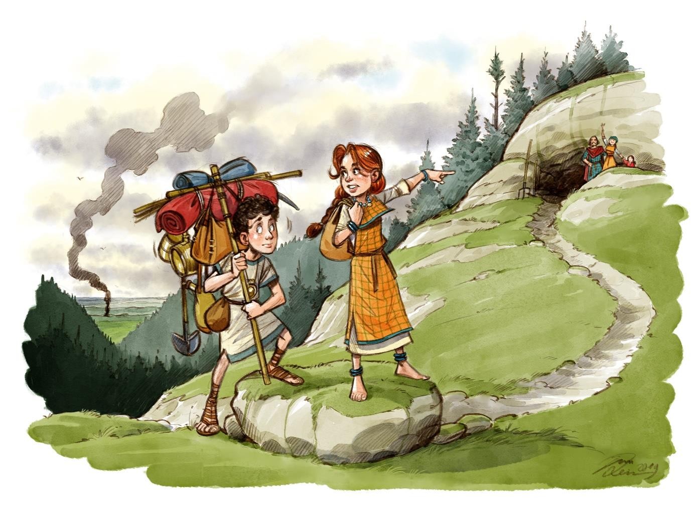 Das Leben in der Höhle hat die zwei Familien zusammengeschweißt. Deshalb beschließen Ateualus und Caius Terentius Praesentinus, die Väter von Annilio und Marcus, mit ihren Familien gemeinsam über die Berge Richtung Süden in eine sichere Gegend zu ziehen. So nehmen Marcus und Annilio schweren Herzens Abschied von ihrer Heimat. Wie froh sind sie darüber, dass sie sich nicht trennen müssen!