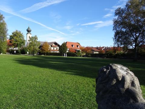 Mit Blick in das Achental erfahren Sie auf einer Informationstafel von den regen Handelswegen, die sich vor mehr als 3000 Jahren durch dieses Tal zogen, belegt durch zahlreiche Funde. Der Kurpark von Grassau ist zentral gelegen und lädt mit Bänken zu einer Pause ein.