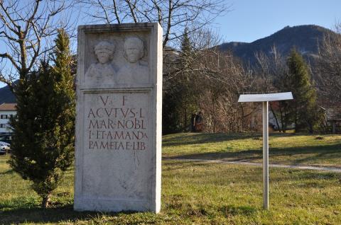 Auf dem Weg von Grassau nach Bergen steht in Staudach-Egerndach die aufwändige Rekonstruktion eines römischen Inschriftensteins.