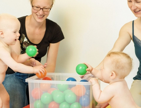 Der Treffpunkt ist ein warmer Raum, damit die Babys sich frei bewegen können. Pädagogisch qualifizierte PEKiP-Leiterinnen begleiten den Kurs professionell. Die Bewegungsfähigkeit Deines Kindes wird gefördert und gleichzeitig auch Deine Eltern-Kind-Bindung vertieft.